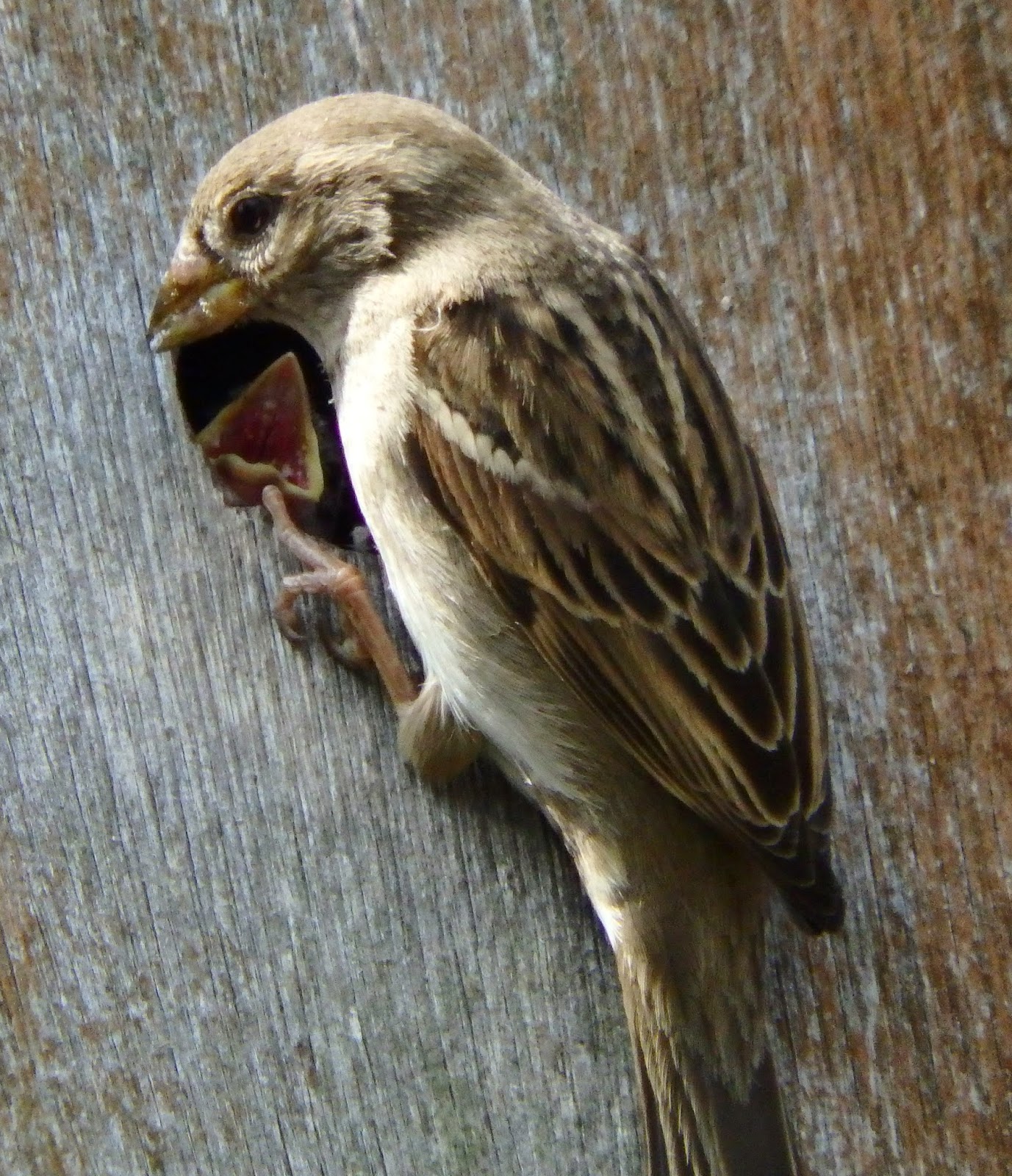 Yet again the nest box on the front of the house has been successfully used by House Sparrows. It's worth putting up with the incessant cheeping for this.